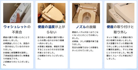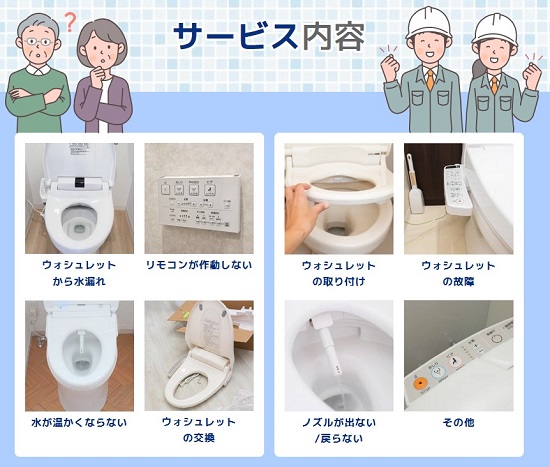 大和市で対応可能な温水便座、ウォシュレットの修理サービスとなります。その他のトラブルやご相談に関しましてはお気軽に受付窓口までお問い合わせください。